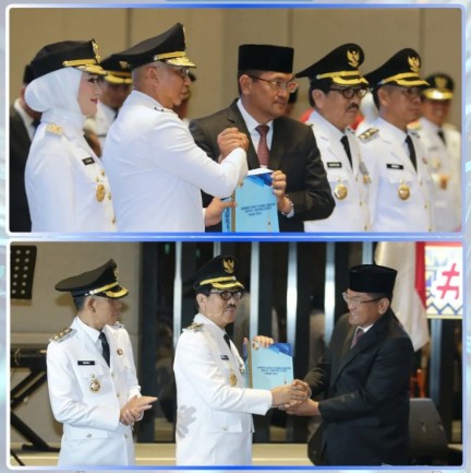 KIPRAH.CO.ID, LAMPUNG UTARA– Proses Serah Terima Jabatan (Sertijab) Pj Bupati Lampung Utara, Drs. H. Aswarodi, M.Si., dengan Bupati terpilih, Dr. Ir. H. Hamartoni Ahadis, M.Si., yang dipimpin langsung oleh Gubernur Lampung, Rahmat Mirzani Djausal, S.T., M.M., berlangsung khidmat di ruang gedung Hotel Movenpick, Jakarta Pusat, Kamis (20/2/2025).