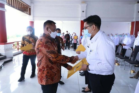 KIPRAH.CO.ID– Bupati Lampung Selatan, H. Nanang Ermanto secara langsung menyerahkan Surat Keputusan (SK) Petikan Bupati Lampung Selatan (Lamsel) tentang Pengangkatan CPNS Kabupaten Lampung Selatan di Aula Sebuku Rumah Dinas Bupati Lamsel, Kamis (7/1/2020).