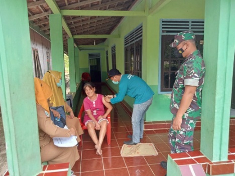 KIPRAH.CO.ID– Bintara Pembina Desa (Babinsa) Koramil 422-01/Pesisir Utara Kodim 0422/LB, Sersan Dua (Serda) Herudin dampingi petugas kesehatan melaksanakan vaksinasi secara door to door di Pekon Malaya, Kecamaatan Lemong Kabupaten Pesisir Barat, Rabu(2/2/2022).