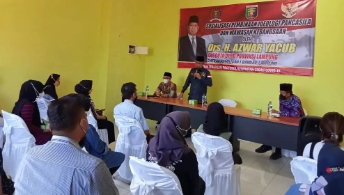 Hal ini disampaikan anggota DPRD Lampung, Azwar Yacub saat menggelar sosialisasi pembinaan Ideologi Pancasila dan Wawasan Kebangsaan (IP dan WK) di Garuntang, Sabtu (19/02/2022).