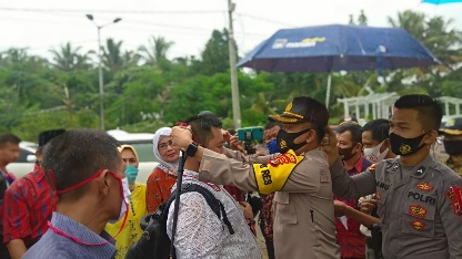 Pelaksanaan pembagian masker tersebut dipimpin oleh Bupati Pesawaran H. Dendi Ramadhona M.Tr.I.P situasi dalam keadaan aman kondusif.