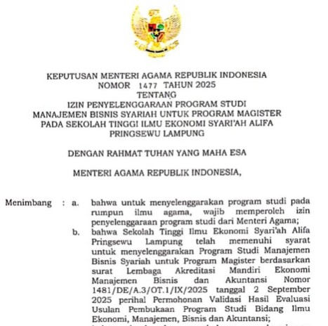 Dengan keputusan ini, STIES ALIFA menjadi salah satu perguruan tinggi swasta di Lampung yang berhasil membuka program pascasarjana di bidang bisnis syariah. Program ini diharapkan mampu memperluas akses pendidikan tinggi syariah sekaligus memperkuat kontribusi kampus daerah dalam pengembangan ekonomi berbasis syariah.