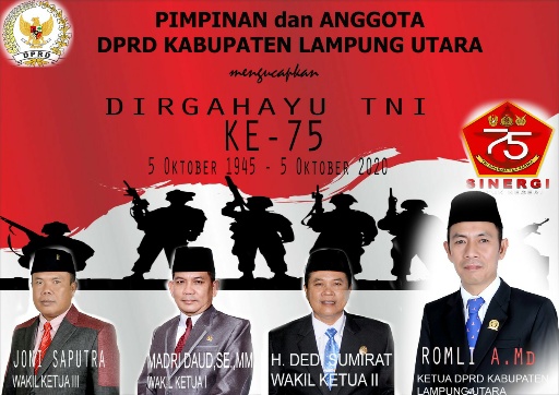 KIPRAH.CO.ID– Ketua DPRD Kabupaten Lampung Utara, Romli mengucapkan selamat ulang tahun kepada TNI, semoga selalu…