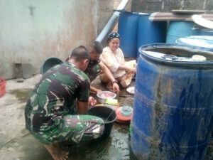 Kekompakan antara satgas TMMD dan masyarakat tidak hanya dalam gotong royong melakukan pembangunan fisik. Namun hingga aktivitas di dapur untuk menyiapkan makanan para prajurit, Senin (14/10/2019).