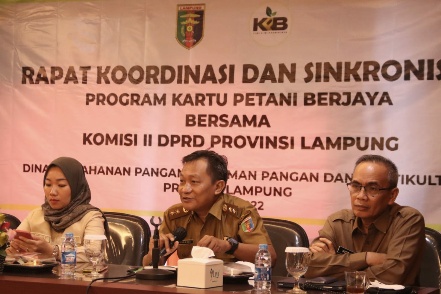 KIPRAH.CO.ID– Pemerintah Provinsi Lampung melalui Dinas Ketahanan Pangan, Tanaman Pangan dan Hortikultura Provinsi Lampung melakukan Sosialisasi, Koordinasi dan Sinkronisasi Program Kartu Petani Berjaya bersama Komisi II DPRD Provinsi Lampung, di Begadang Resto, Senin (6/6/2022).