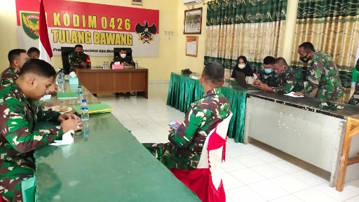 Ketua Tim Sopsad Kolonel Inf Adrian dalam arahannya menyampaikan, kunjungannya ke Kodim 0426 Tulang Bawang adalah dalam rangka verifikasi aplikasi Anev data tahun 2021.