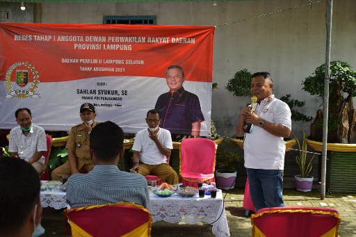 KIPRAH.CO.ID– Anggota DPRD Provinsi Lampung Sahlan Syukur,SE atau biasa disapa Aan kembali turun ke dapil dalam rangka Reses (tampung aspirasi) tahap I di Dusun Banyuwangi Desa Bumidaya, Kecamatan Palas, Lampung Selatan, Selasa (23/2/2021).
