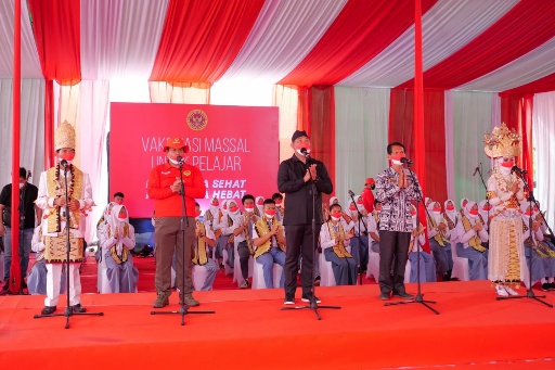 KIPRAH.CO.ID– Bupati Umar Ahmad, S.P. beserta Kepala BIN Daerah Lampung Iwan Satriawan, S.Pd, M.Si. melaksanakan kegiatan vaksinasi massal untuk pelajar dan santri di SMKN 1 Tulangbawang Tengah, Kabupaten Tulang Bawang Barat.