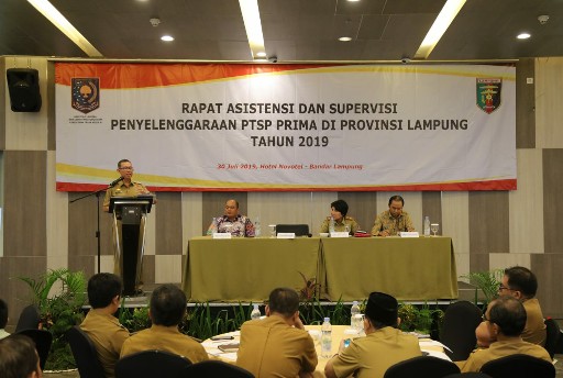 “PTSP ini adalah ujung tombak untuk menjemput investasi,” ujar Pj. Sekretaris Daerah Provinsi Lampung, Fahrizal Darminto saat acara Rapat Asistensi dan Supervisi Penyelenggaraan PTSP Prima di Provinsi Lampung tahun 2019, di Hotel Novotel, Selasa (30/7/2019).