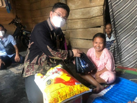 Angga melakukan kunjungan ini bertujuan untuk memberikan tali asih berupa bantuan sembako serta dana untuk membantu pengobatan balita berumur 5 tahun ini.