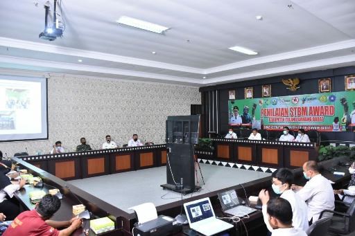 Wakil Bupati Tulang Bawang Barat memberikan paparan terkait STBM Award Tahun 2021. Menurutnya, Kabupaten Tulangbawang Barat (Tubaba) dibentuk melalui UU Nomor 50 Tahun 2008 tanggal 26 November 2008, tentang Pembentukan Kabupaten Tulang Bawang Barat di Provinsi Lampung, dan diresmikan oleh Menteri Dalam Negeri atas nama Presiden RI pada tanggal 3 April 2009 di Jakarta.