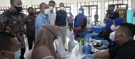 KIPRAH.CO.ID– Wakil Bupati Lampung Selatan, Pandu Kesuma Dewangsa, S.IIP sambut kunjungan Wakil Ketua MPR RI, Dr. (H.C) H. Zulkifli Hasan, SE, MM dalam rangka peninjauan pelaksanaan vaksinasi di provinsi lampung yang dilakukan di SMA Kebangsaan Kecamatan Penengahan Lampung Selatan, Kamis (26/8/2021).