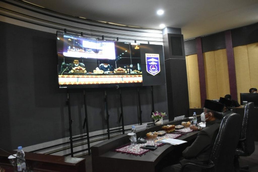 KIPRAH.CO.ID– Walikota Metro Achmad Pairin menyampaikan RKPD Laporan Keterangan Pertanggung Jawaban (LKPJ) Walikota Metro akhir tahun 2019, saat Rapat Paripurna DPRD melalui video conference di Command Center lantai dua Bappeda, Selasa (7/4/2020).