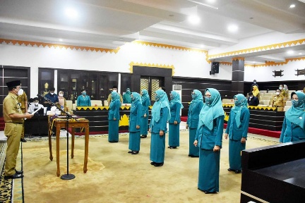 KIPRAH.CO.ID– Walikota Metro, Wahdi didampingi Ketua PKK Kota Metro Silfia Naharani, melantik pengurus Tim Penggerak PKK Kota Metro pada masa bhakti 2021-2026 di Aula setempat, Selasa (23/3/2021).