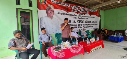 KIPRAH.CO.ID– Anggota DPRD Provinsi Lampung, Watoni Noerdin menggelar sosialisasi peraturan daerah di Desa Way Urang, Kecamatan Padang Cermin, Kabupaten Pesawaran, Rabu 11 Mei 2022.