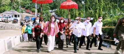 KIPRAH.CO.ID– Bupati Lampung Selatan, H. Nanang Ermanto bersama Ketua TP PKK Lampung Selatan, Hj. Winarni Nanang Ermanto sambut baik kunjungan kerja (Kunker) Ketua TP PKK Provinsi Lampung, Hj. Riana Sari Arinal di Pantai Kahai, Desa Batu Balak, Kecamatan Rajabasa, Rabu (8/12/2021).