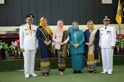 KIPRAH.CO.ID– Aprilani Yustin Ficardo melantik Endah Kartika Prajawati Agung sebagai Ketua TP PKK, Ketua Dewan Kerajinan Nasional Daerah (Dekranasda) dan Bunda Pendidikan Anak Usia Dini (PAUD) Kabupaten Lampung Utara masa bakti 2019-2024, di Gedung Pusiban, Kantor Gubernur Provinsi Lampung, Senin (25/3/19). Pelantikan ditandai dengan penyematan Pin ( pin PKK dan Dekranasda) dan pemasangan Selempang Bunda Paud oleh Ibu Yustin kepada Endah Kartika.